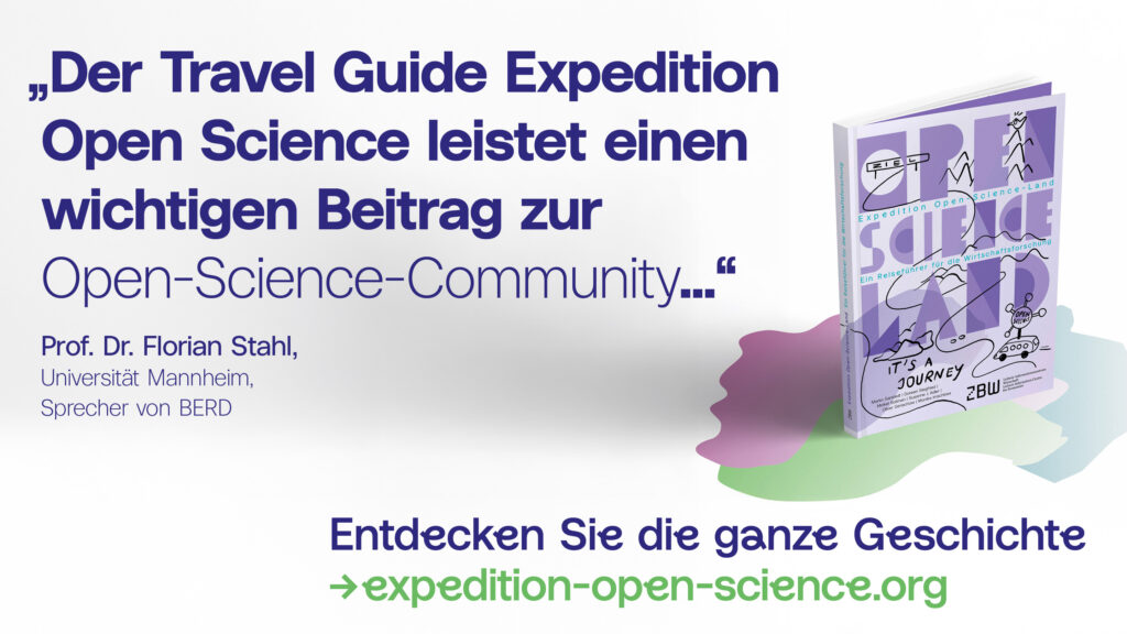 Im Januar 2026 wurde die Publikation „Expedition Open-Science-Land: Ein Reiseführer für die Wirtschaftsforschung“ veröffentlicht. Sie nutzt das Bild einer Reise, um Schritte, Entscheidungen und typische Stolperstellen entlang des Forschungsprozesses einzuordnen. Das Ergebnis ist eine Art Reiseführer, der inspirieren, orientieren und zum Mitgestalten anregen soll. Dieser Reiseführer verspricht keine haargenaue Kartografie des „Open-Science-Landes“, sondern abstrahiert und überspitzt, sodass die Lektüre mit einem Augenzwinkern genossen werden kann.
